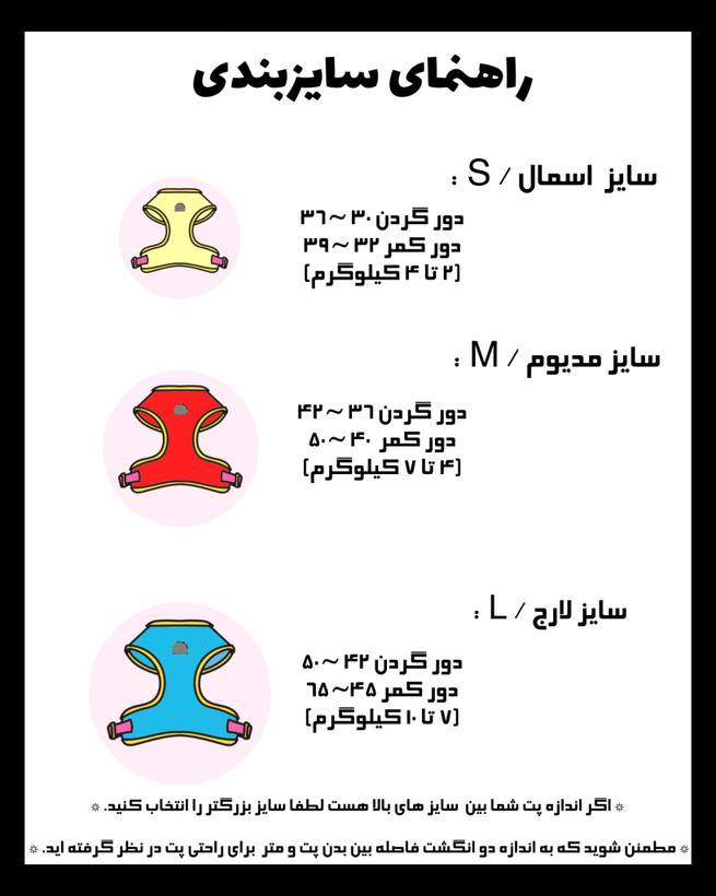 سایز اسمال : دور گردن 25 تا 30 / دور قفسه سینه 30 تا 40 (2 تا 4 کیلوگرم)