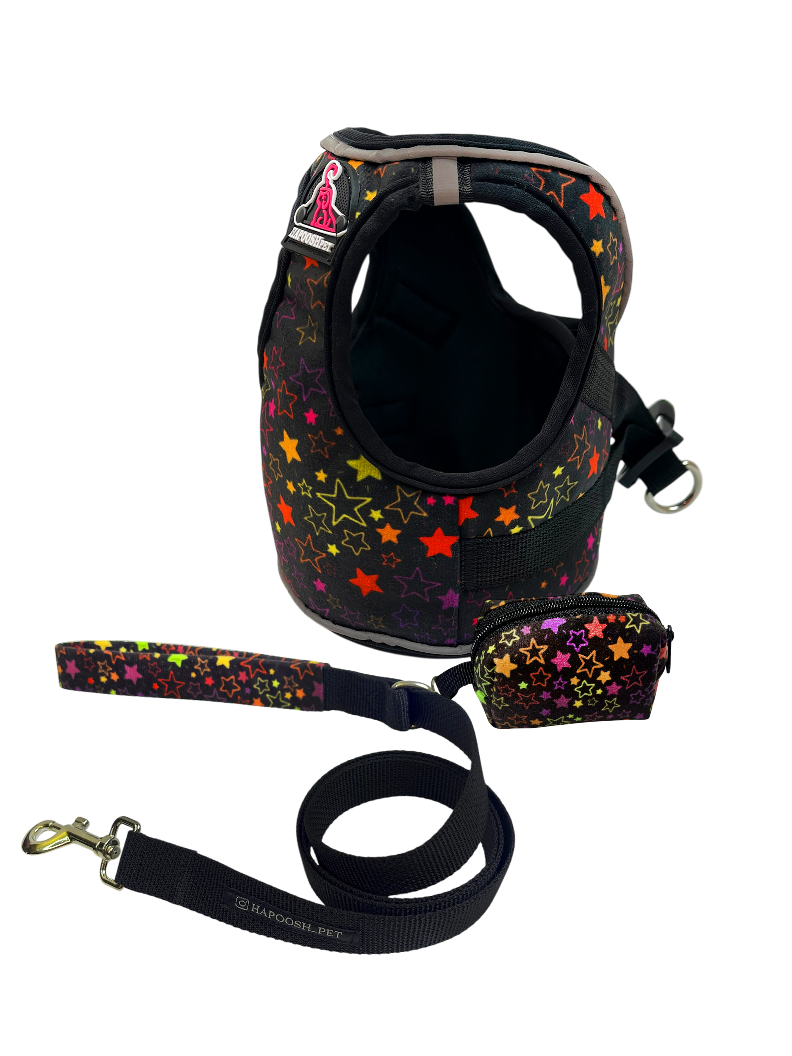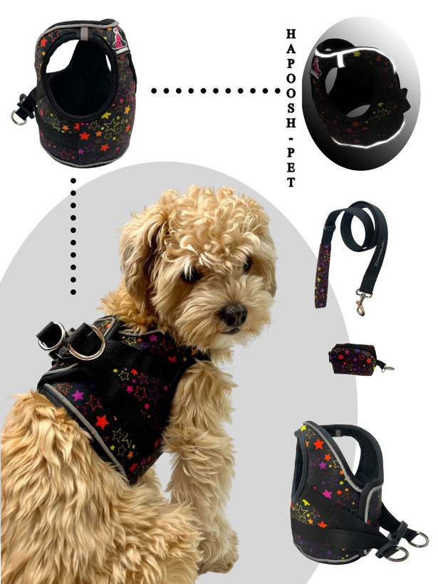 قلاده تنی لباسی هارنس (Harness) مشکی ستاره ای