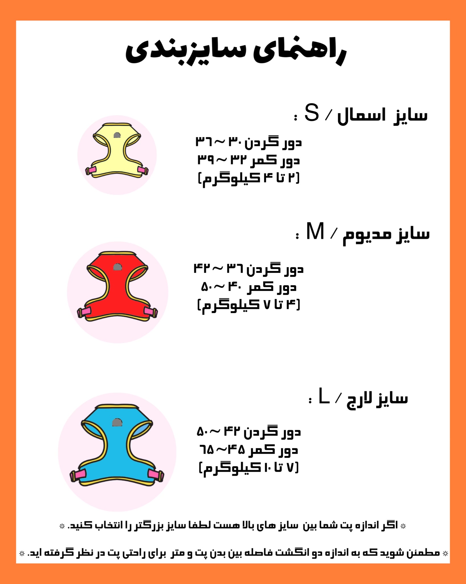 سایز لارج : دور گردن 42 تا 50 / دور قفسه سینه 45 تا 65 (7 تا 10 کیلوگرم)