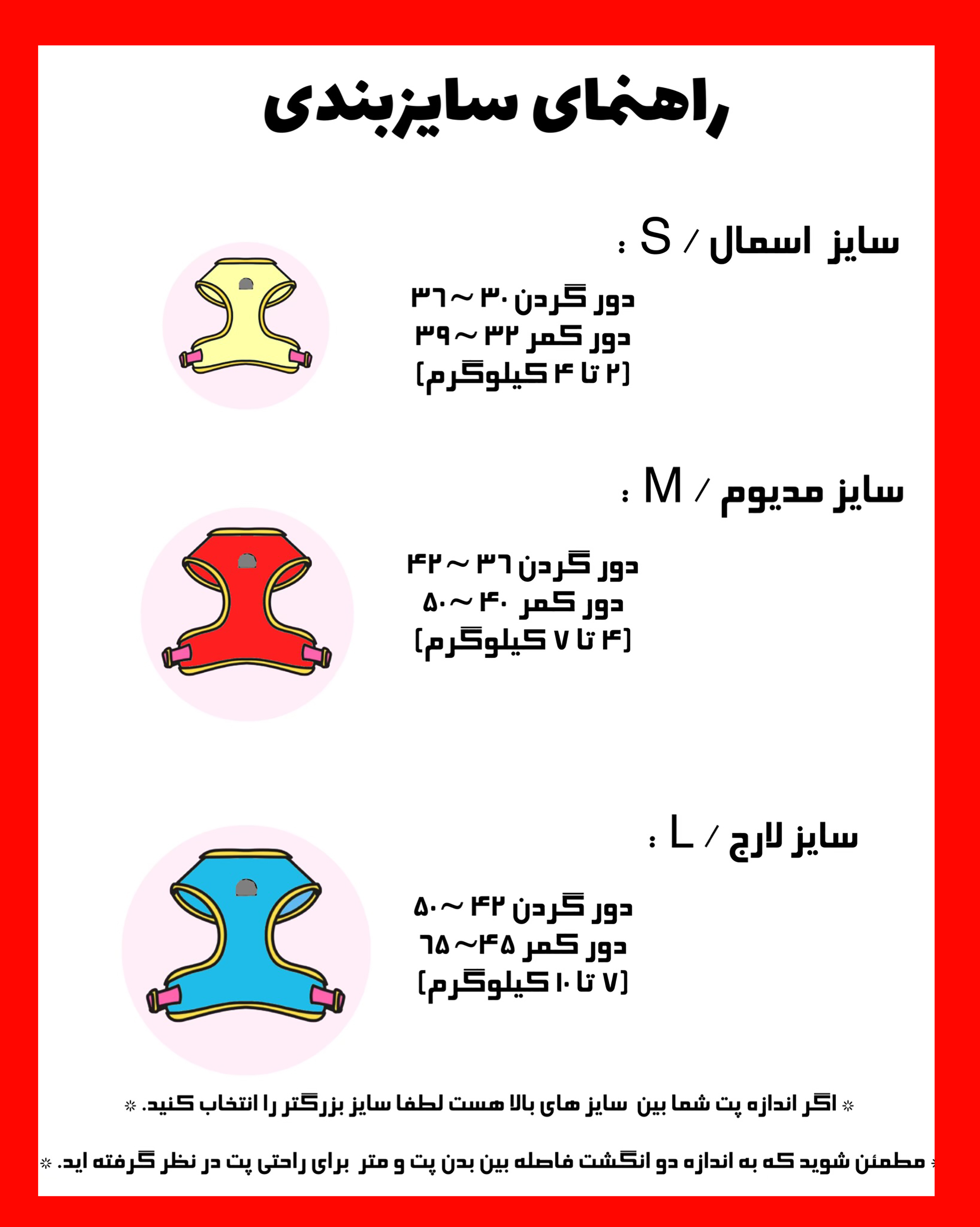 قلاده کتفی پددار سگ مدل هارنس (harness) قرمز ستاره ای